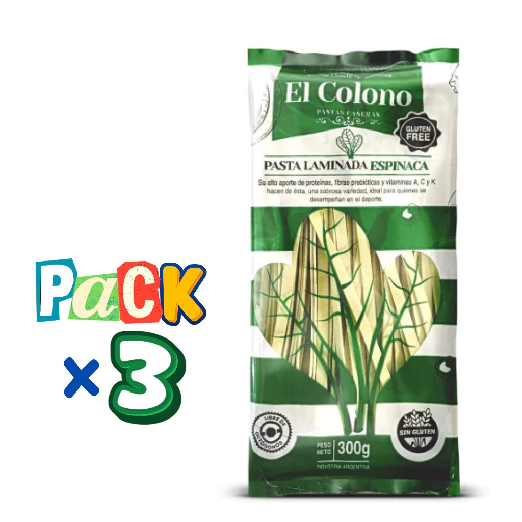 PACK AHORRO x 3 Pastas Secas - Cintas Laminadas con Espinaca El Colono x 300g c/u